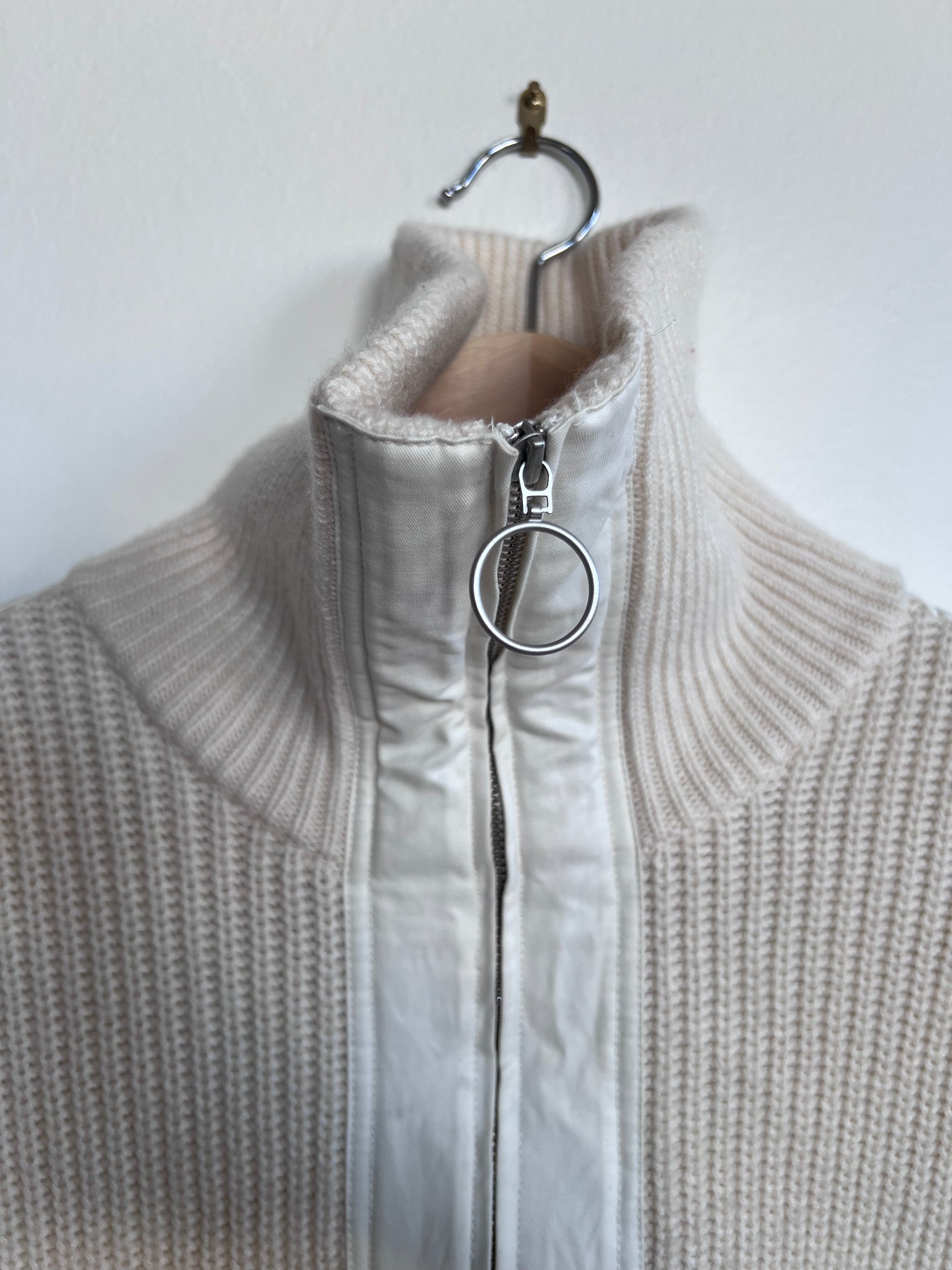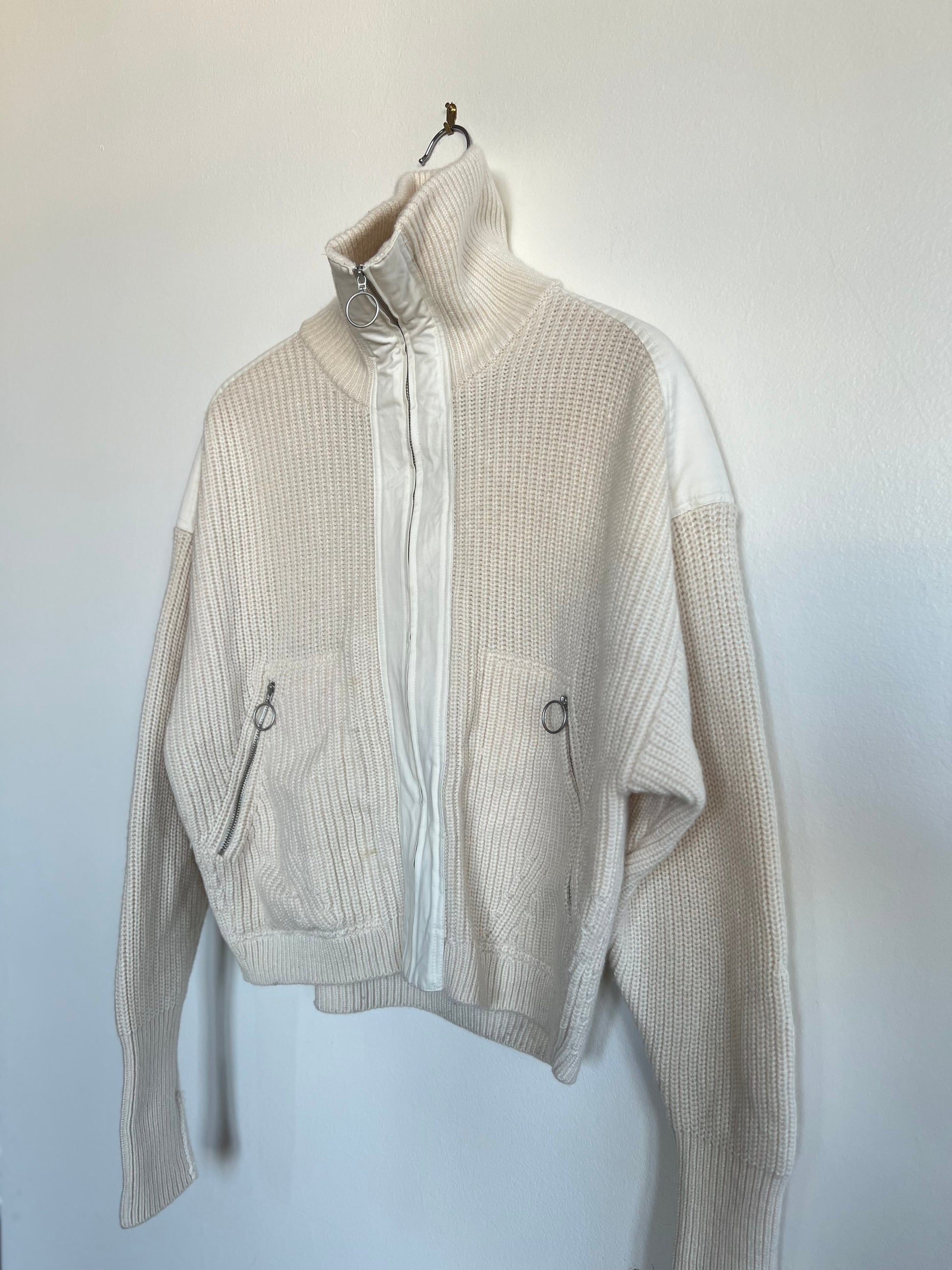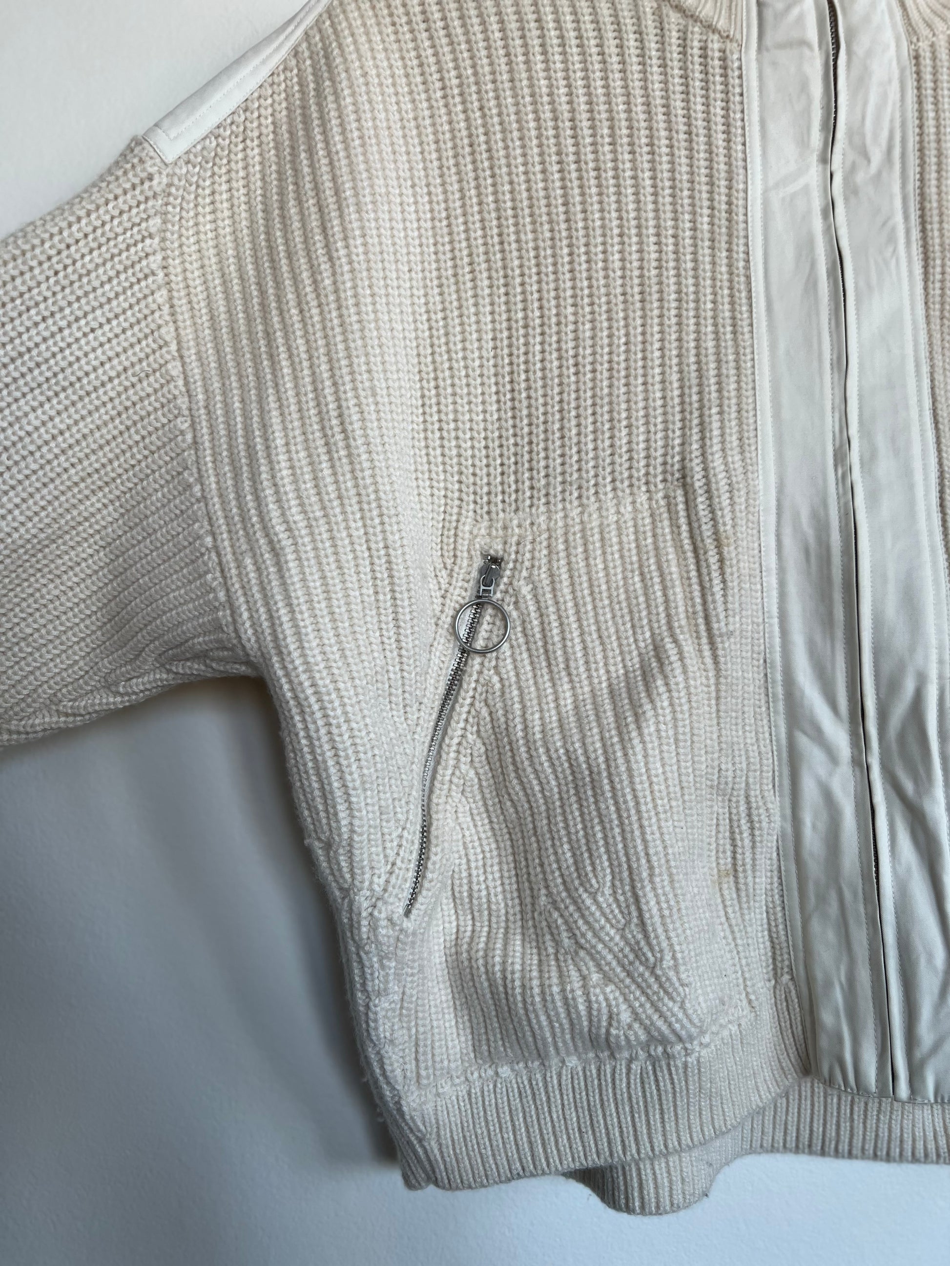"And other stories" white sweater / zip up with pockets and leather shoulders - Size S