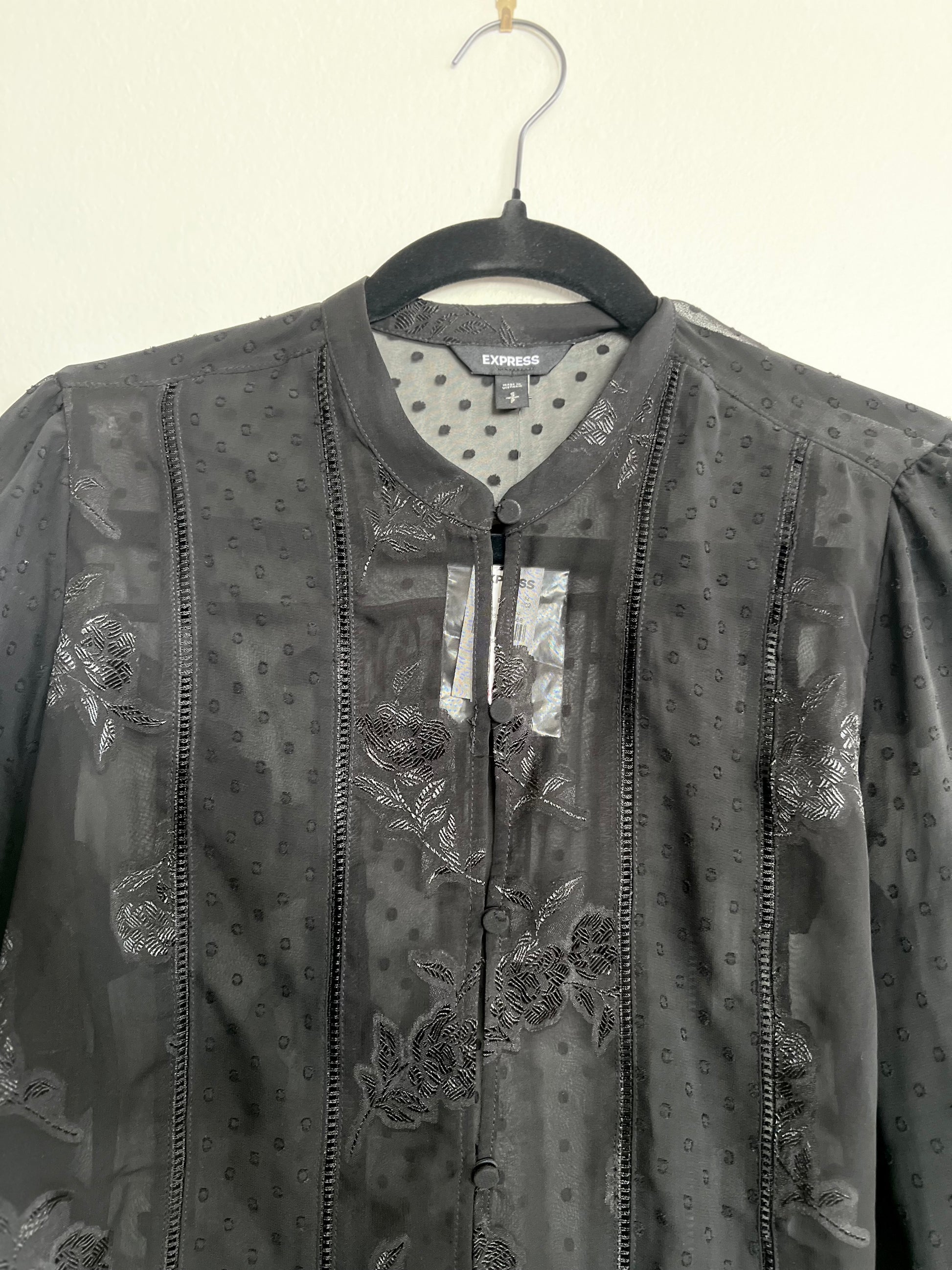 "Express" long sleeves black sheer shirt - Size S