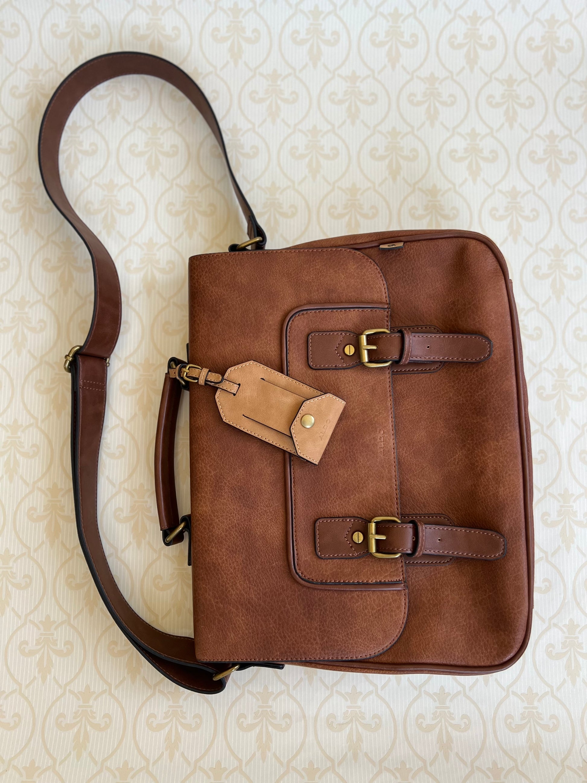 Fits a 15" computer and it has 6 individual interior pockets: 1 for laptop, 1 zipper pocket, 2 medium ones & 2 small ones.